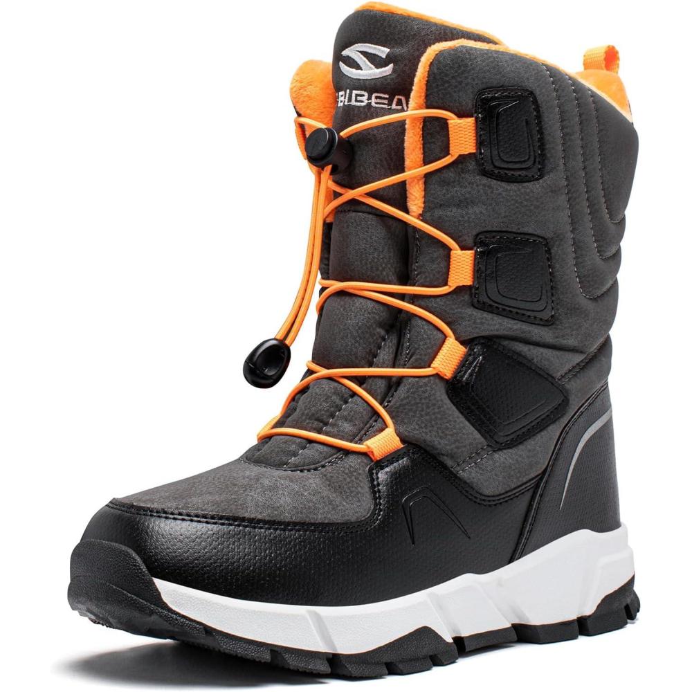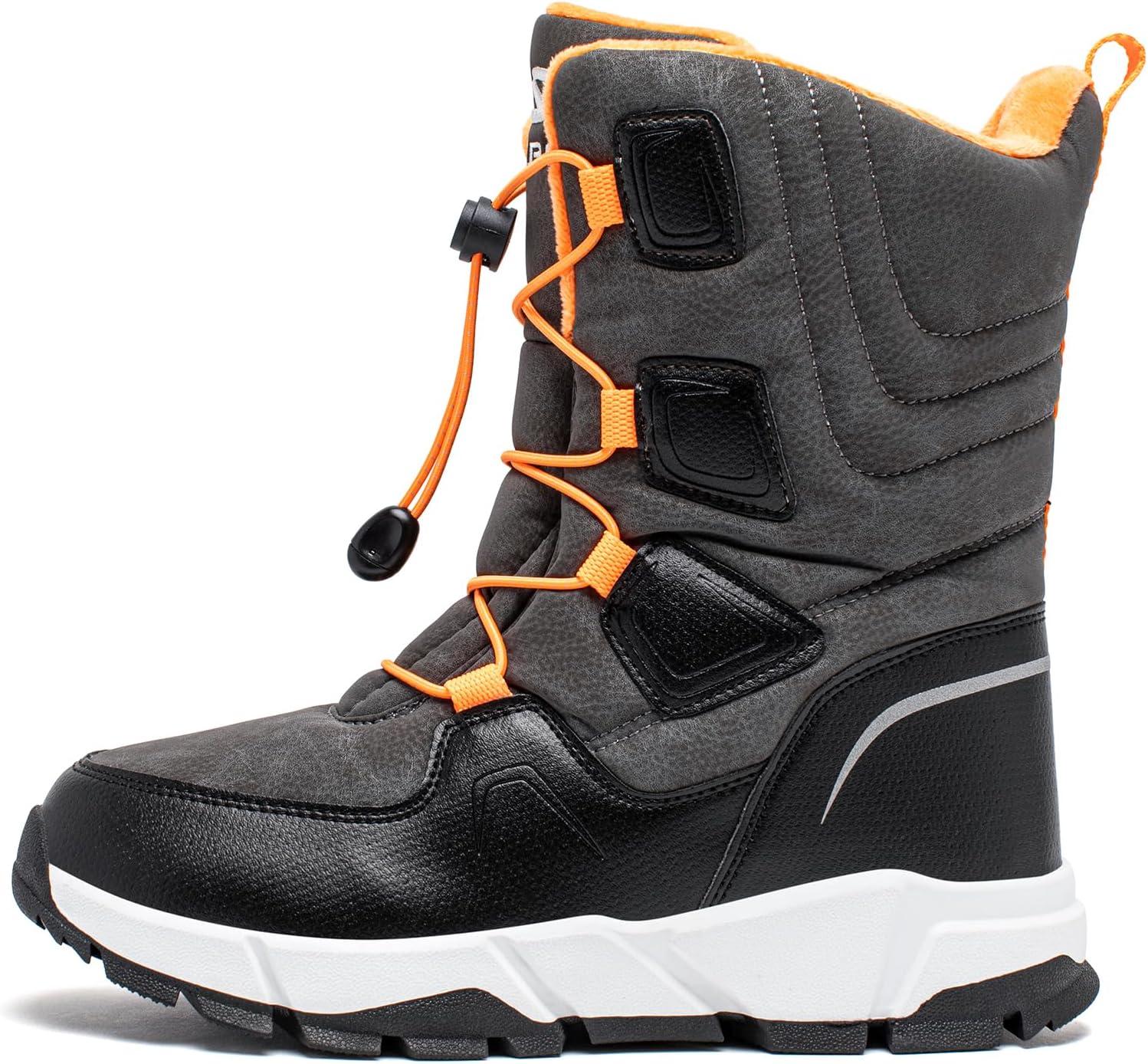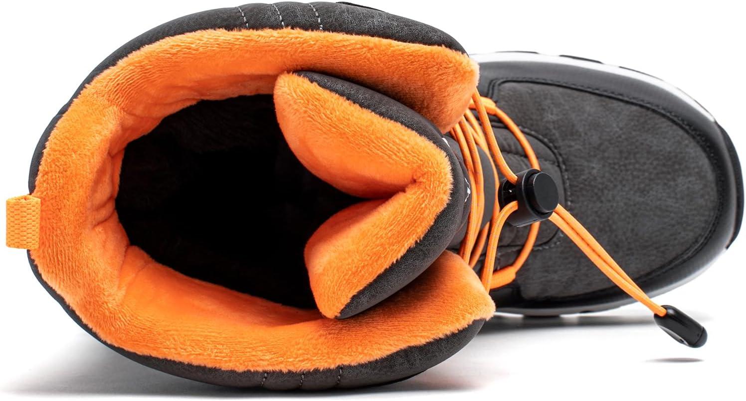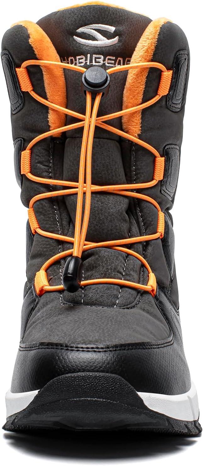 HOBIBEAR Kids Snow Boots Boys Girls Mid Calf Waterproof Warm Faux Fur Lined Insulated Winter Shoes(Toddler/Little Kid/Big Kid)(Grey/Orang)