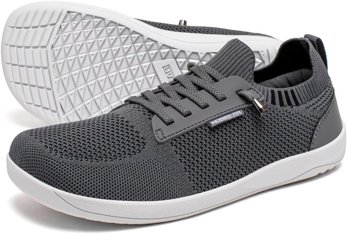 HOBIBEAR Unisex Wide Barefoot Minimalist Shoes for Womens Mens Zero Drop Shoes Lightweight(Grey)