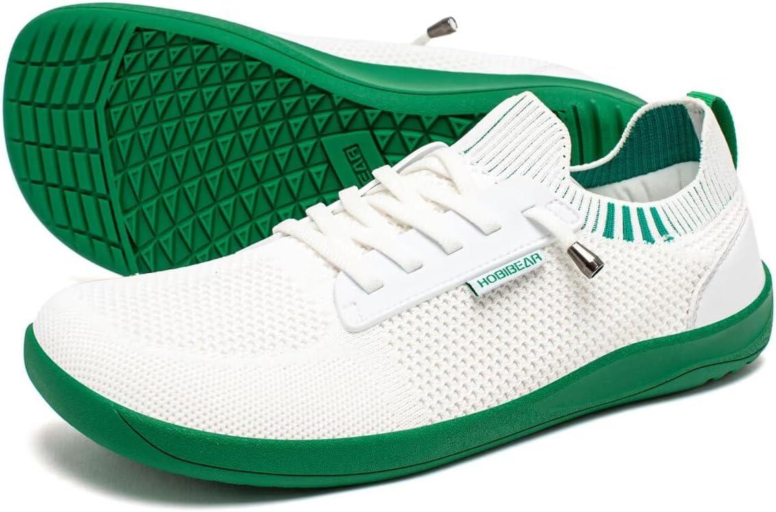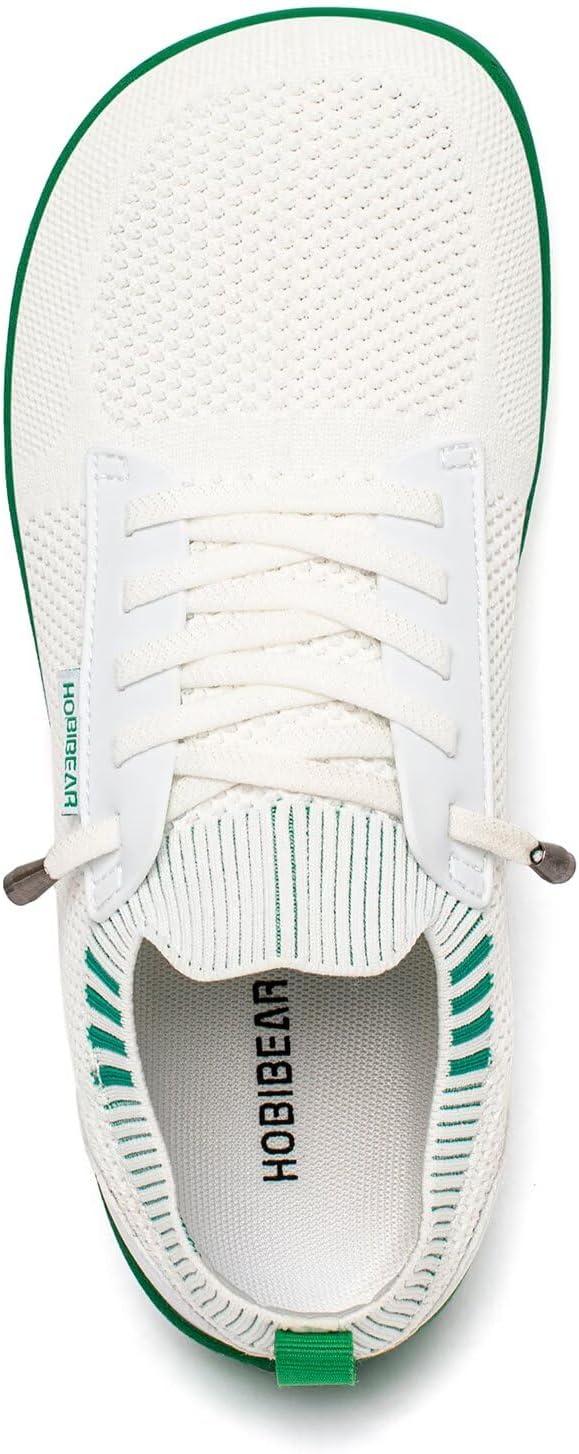 HOBIBEAR Unisex Wide Barefoot Minimalist Shoes for Womens Mens Zero Drop Shoes Lightweight(White-green)