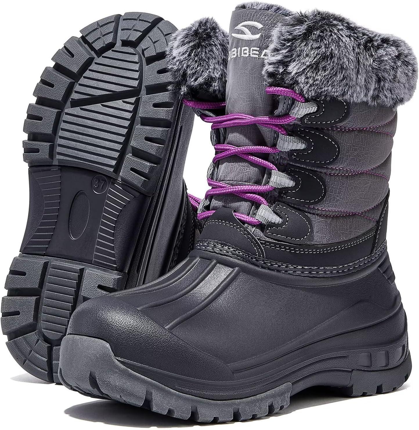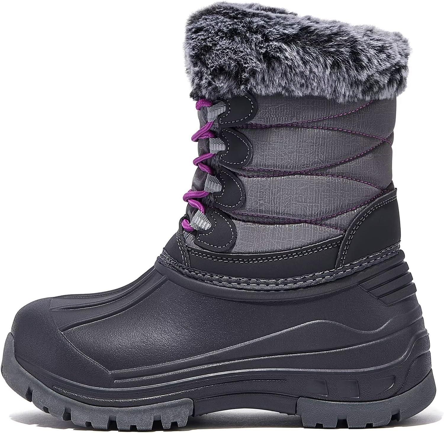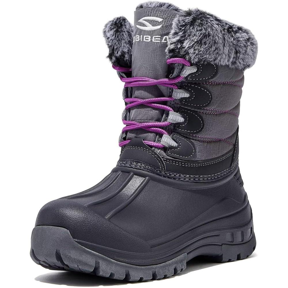HOBIBEAR Women’s Waterproof Winter Snow Boots Lightweight Anti-Slip Warm Outdoor Mid-Calf Booties(N-grey)