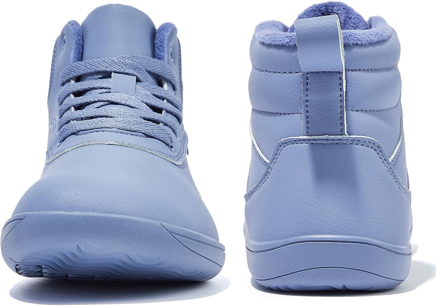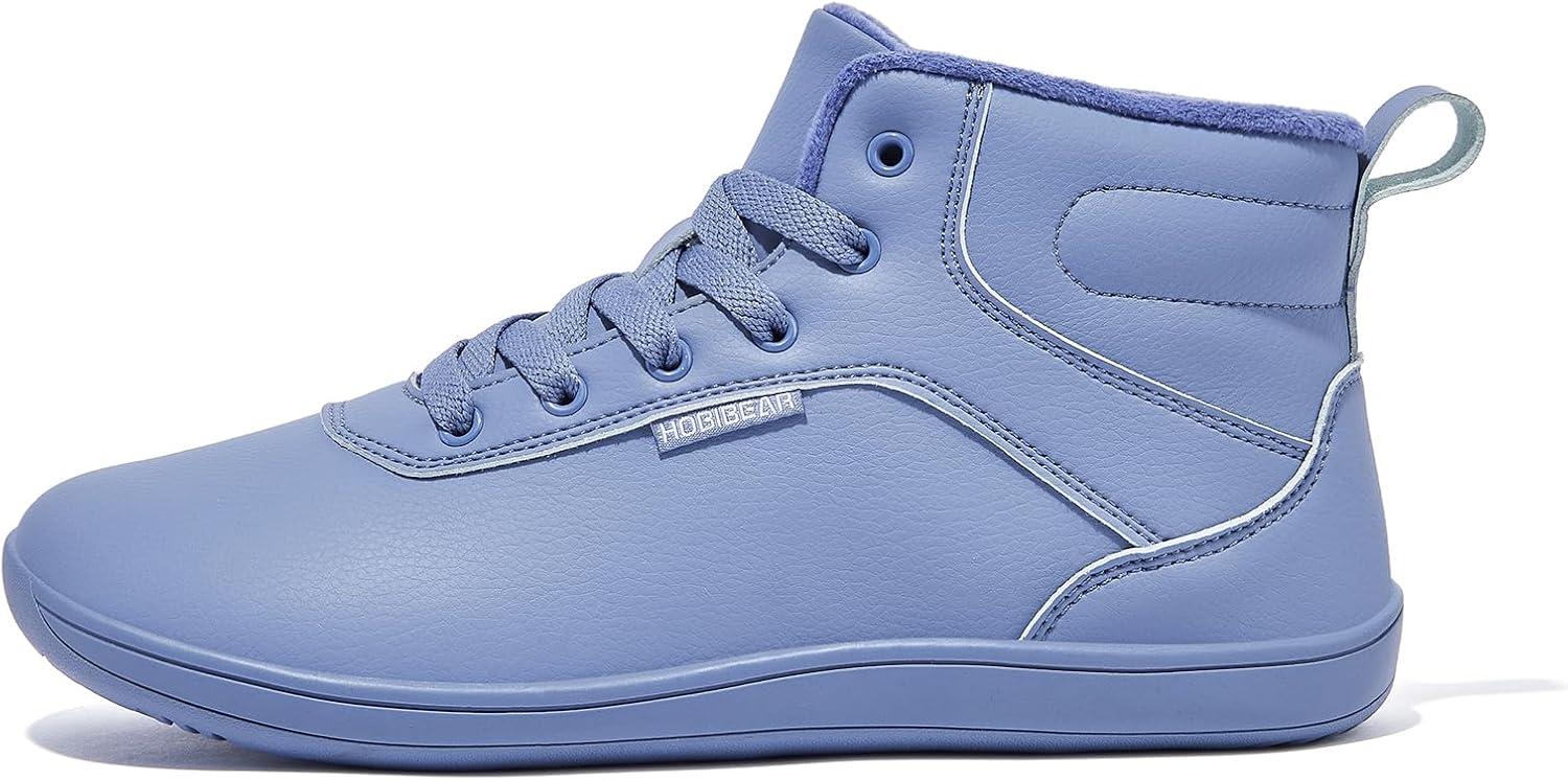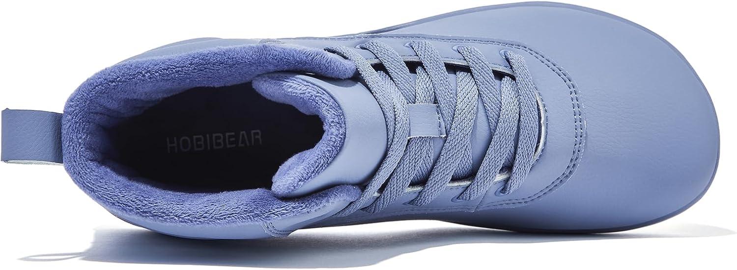 HOBIBEAR Womens Winter Barefoot Shoes Men Wide Toe Box Warm Faux Fur Lined Ankle Sneakers(Blue)