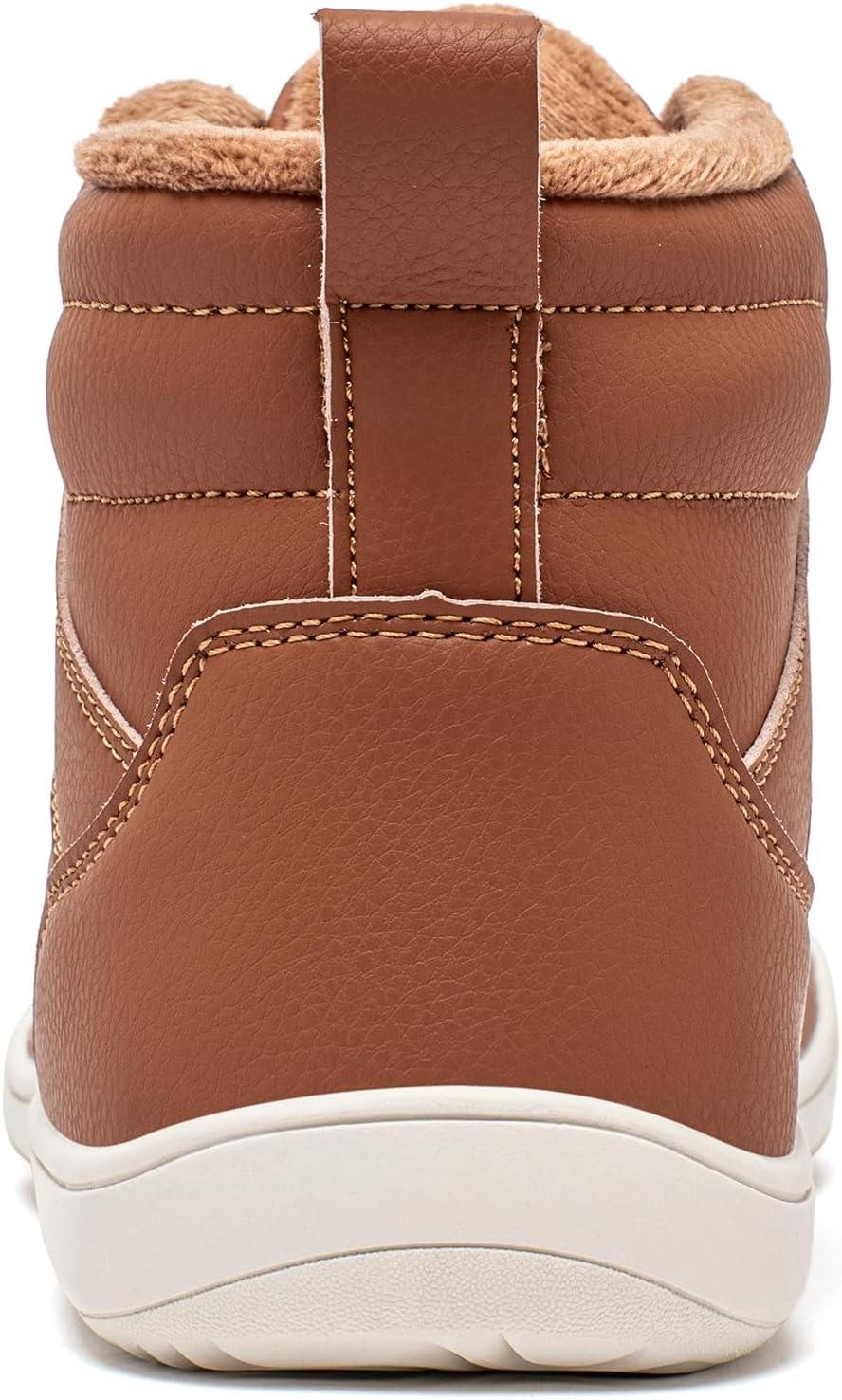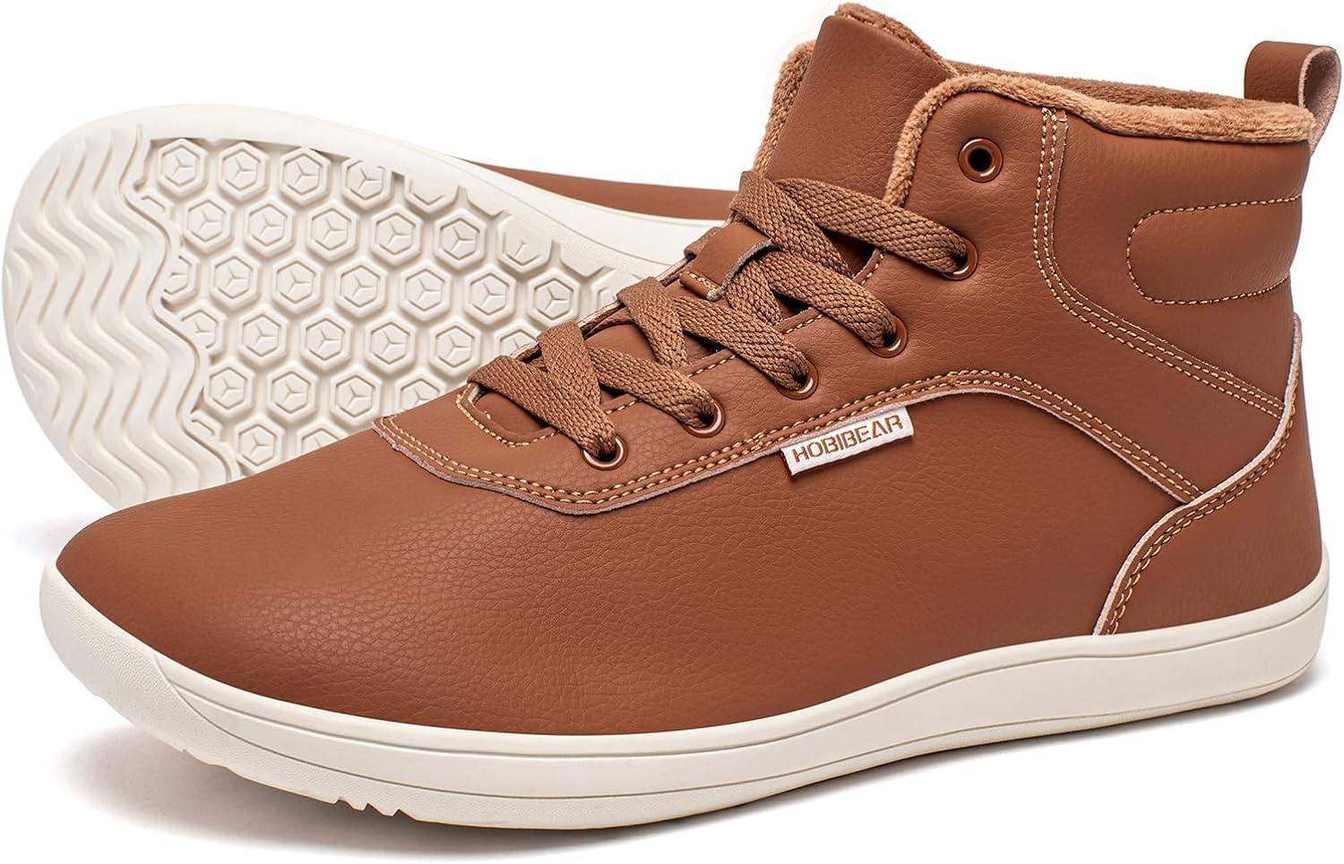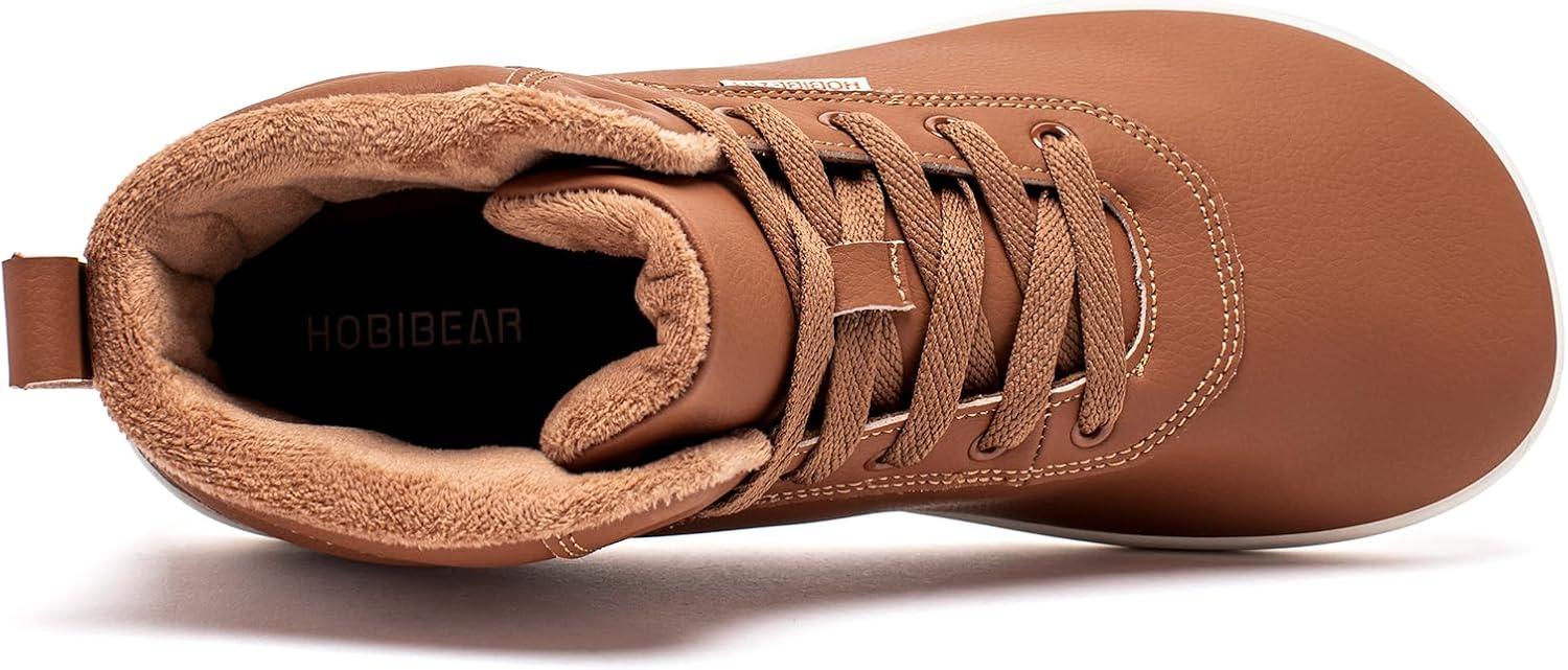 HOBIBEAR Womens Winter Barefoot Shoes Men Wide Toe Box Warm Faux Fur Lined Ankle Sneakers(Brown)