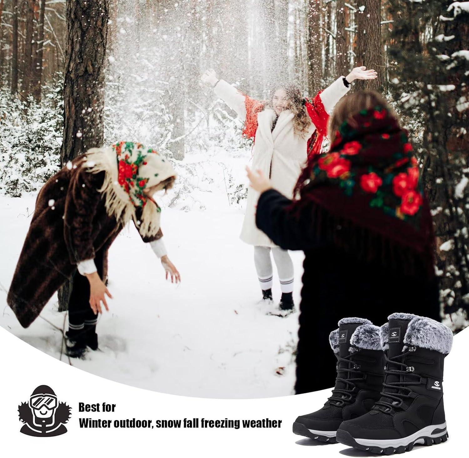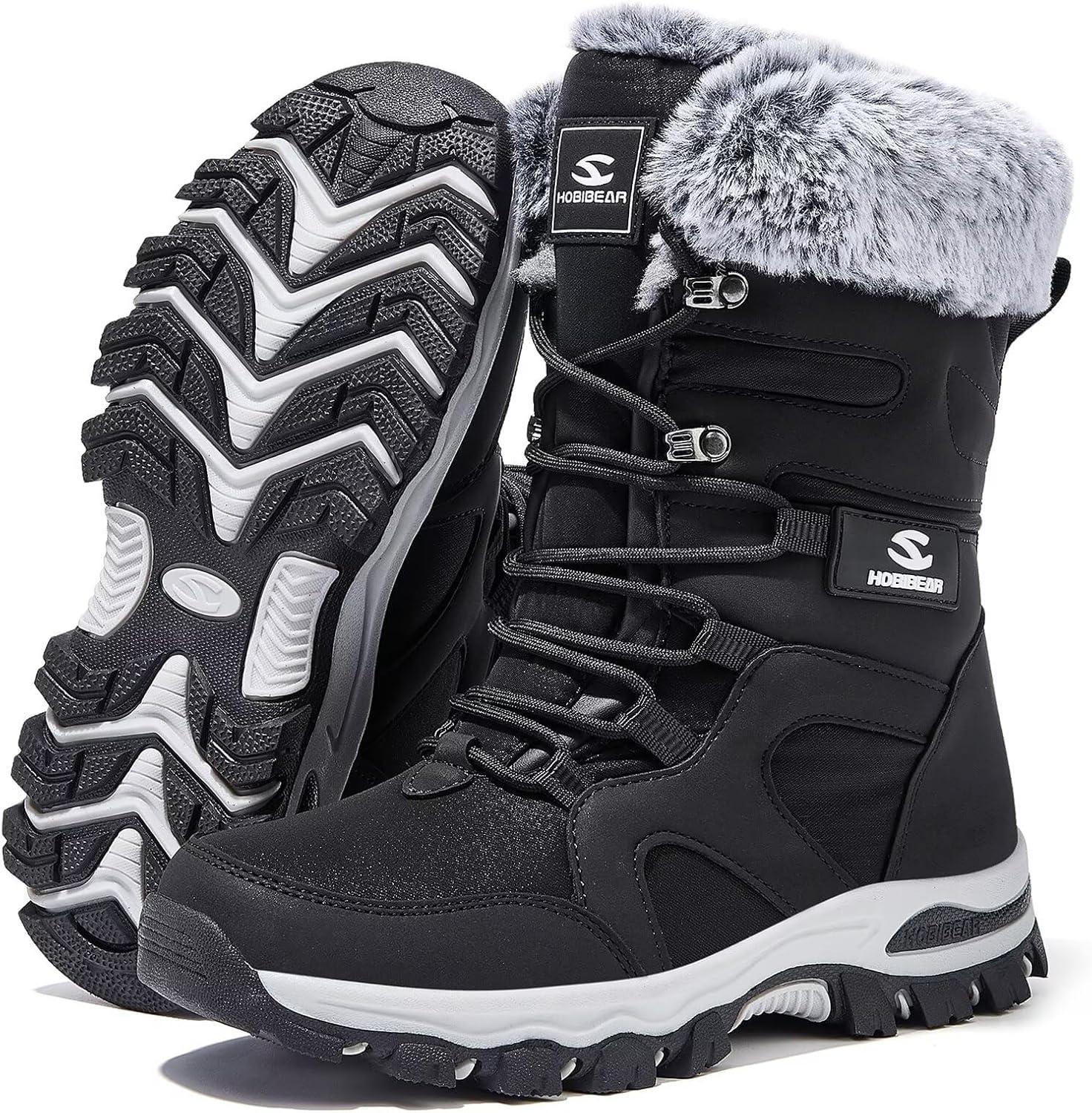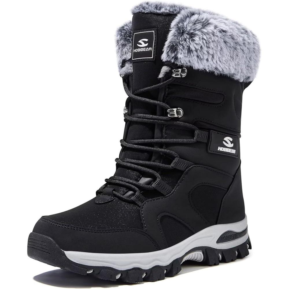 HOBIBEAR Women’s Winter Snow Boots | Mid-Calf | Faux Fur | Water Resistant(Black)