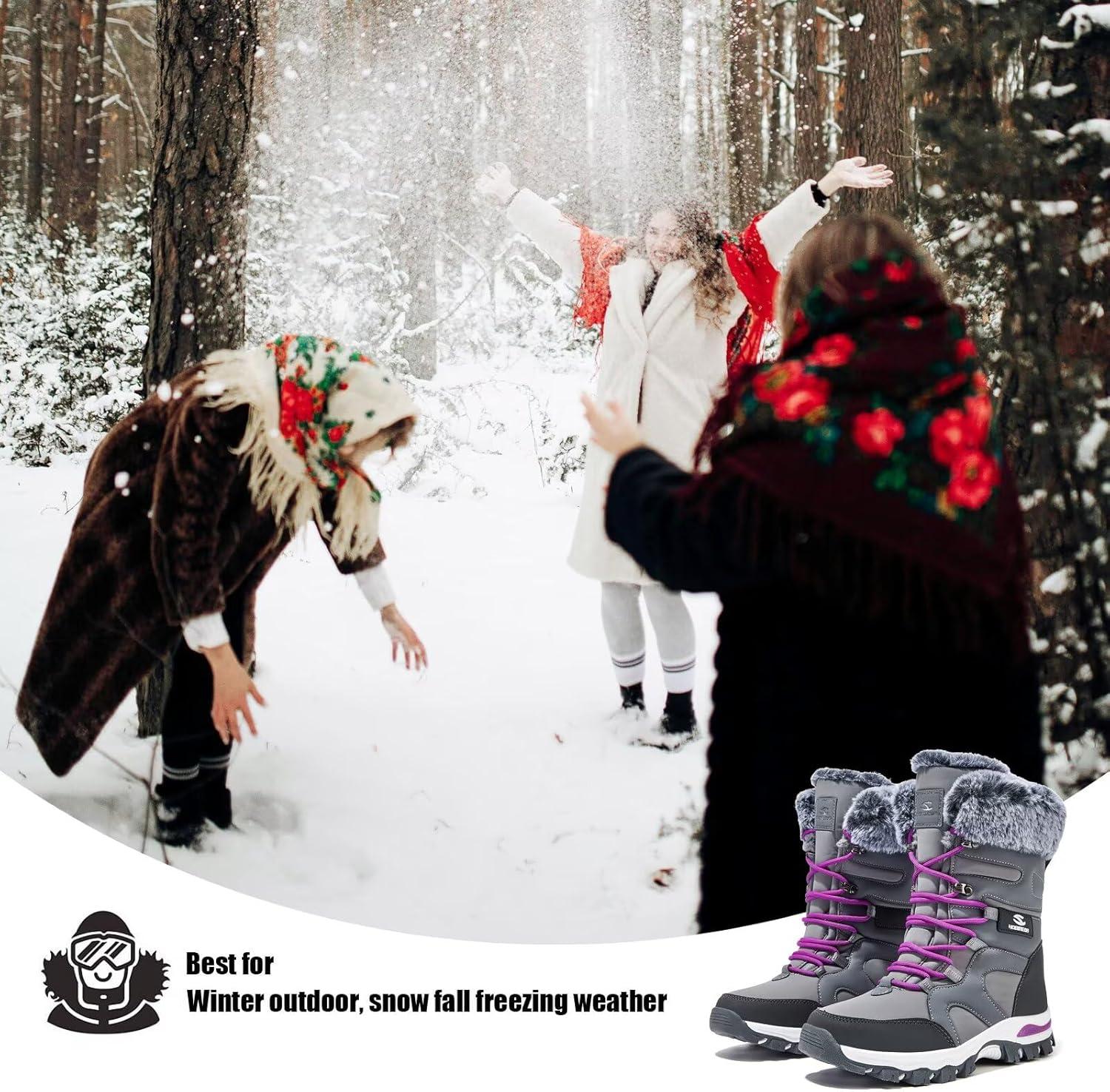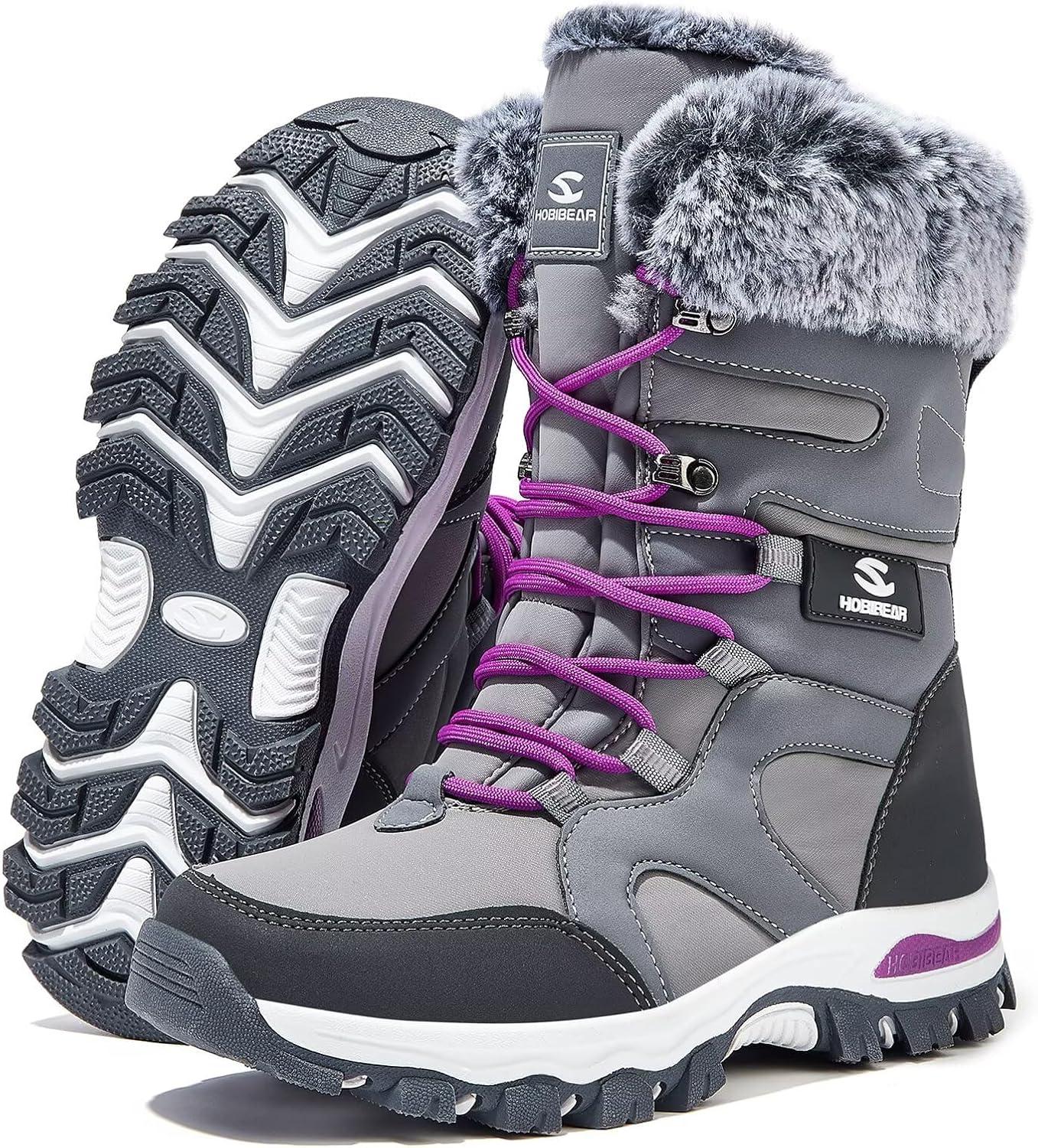 HOBIBEAR Women’s Winter Snow Boots | Mid-Calf | Faux Fur | Water Resistant(Grey)