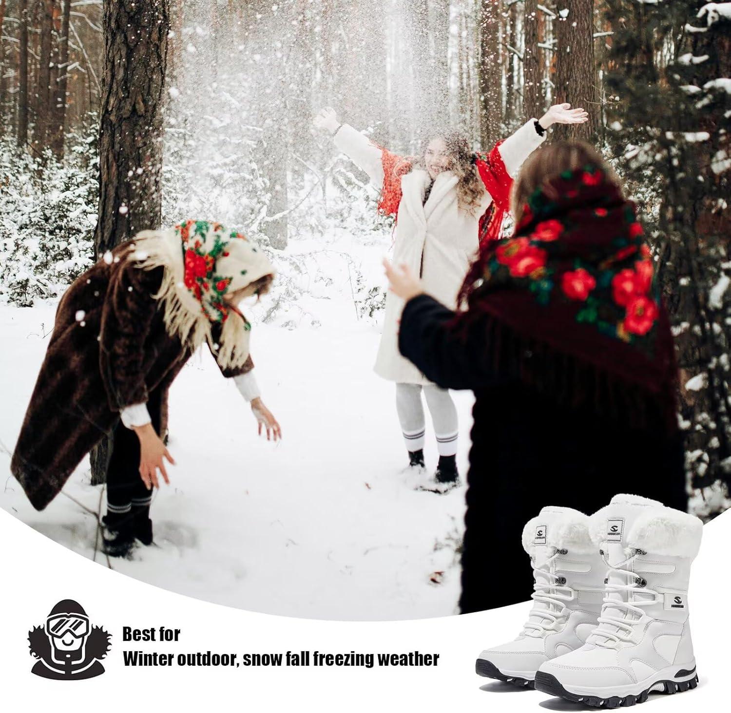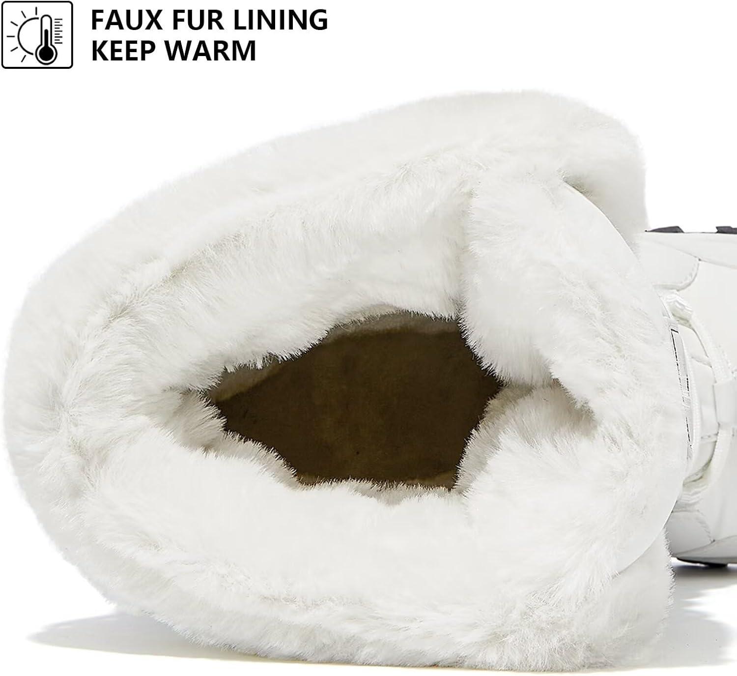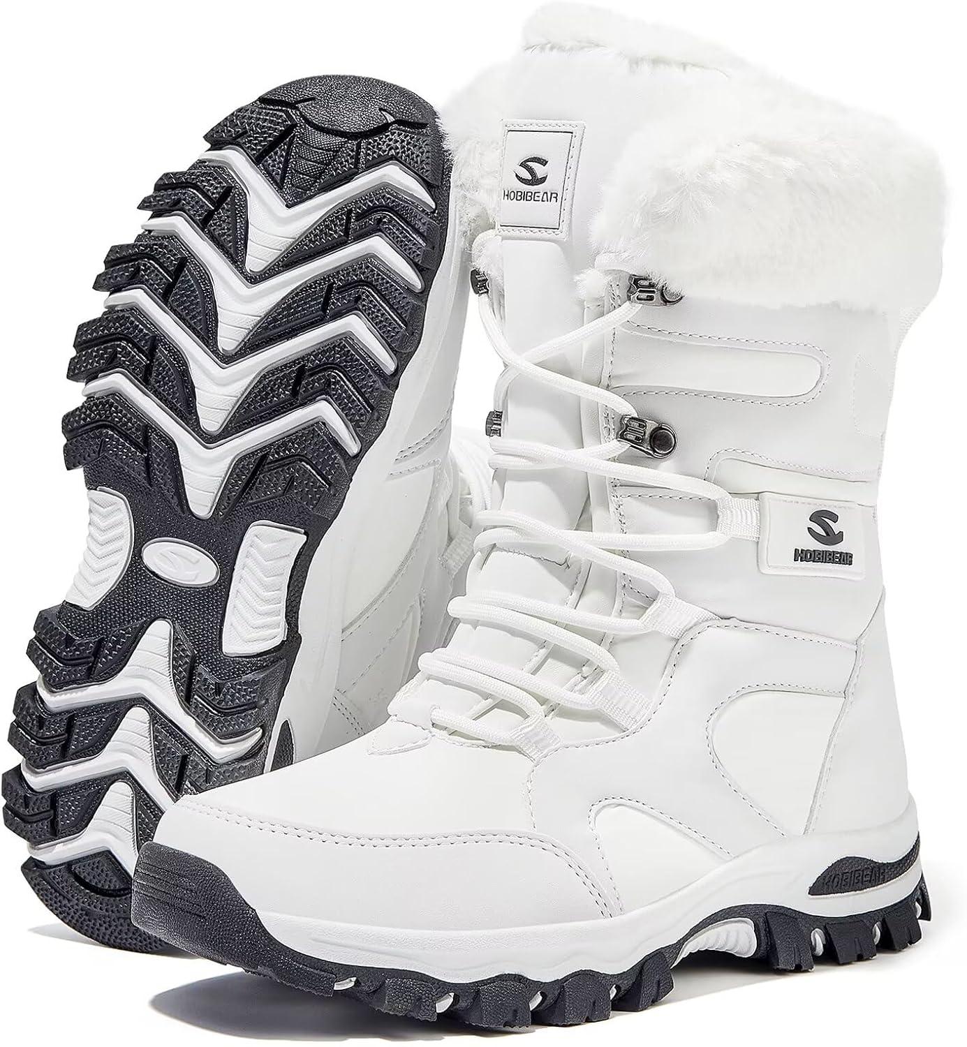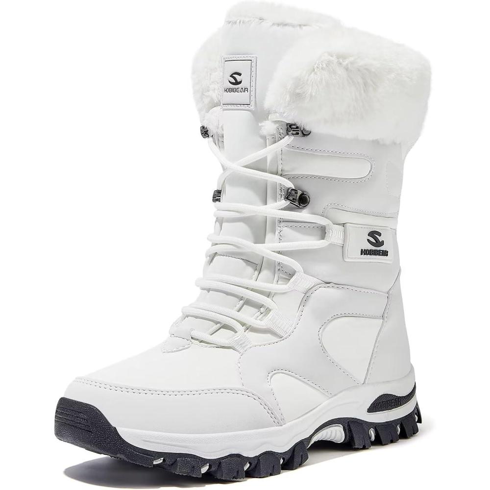 HOBIBEAR Women’s Winter Snow Boots | Mid-Calf | Faux Fur | Water Resistant(White)