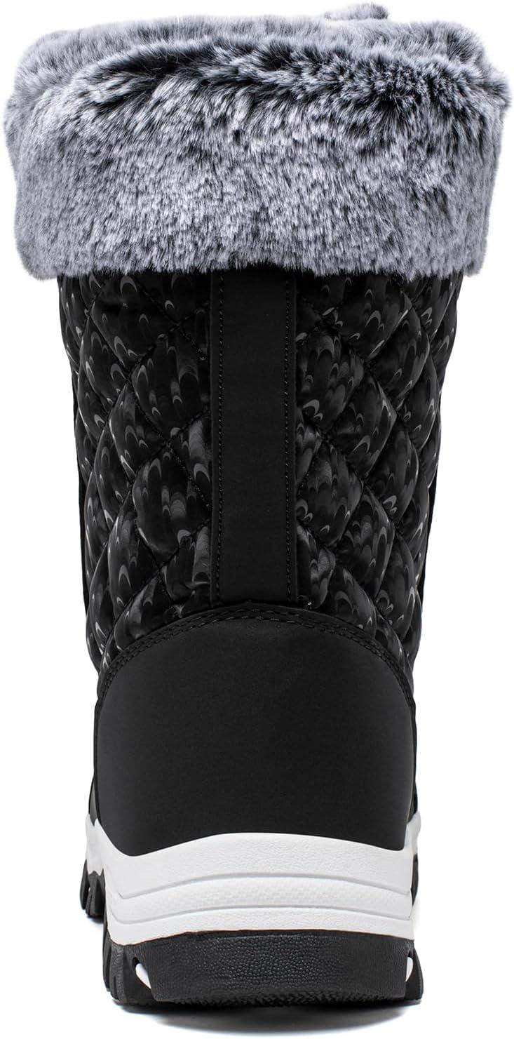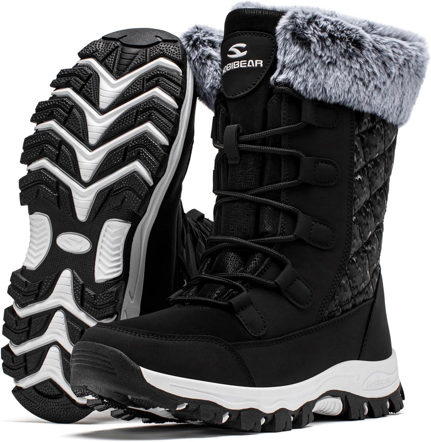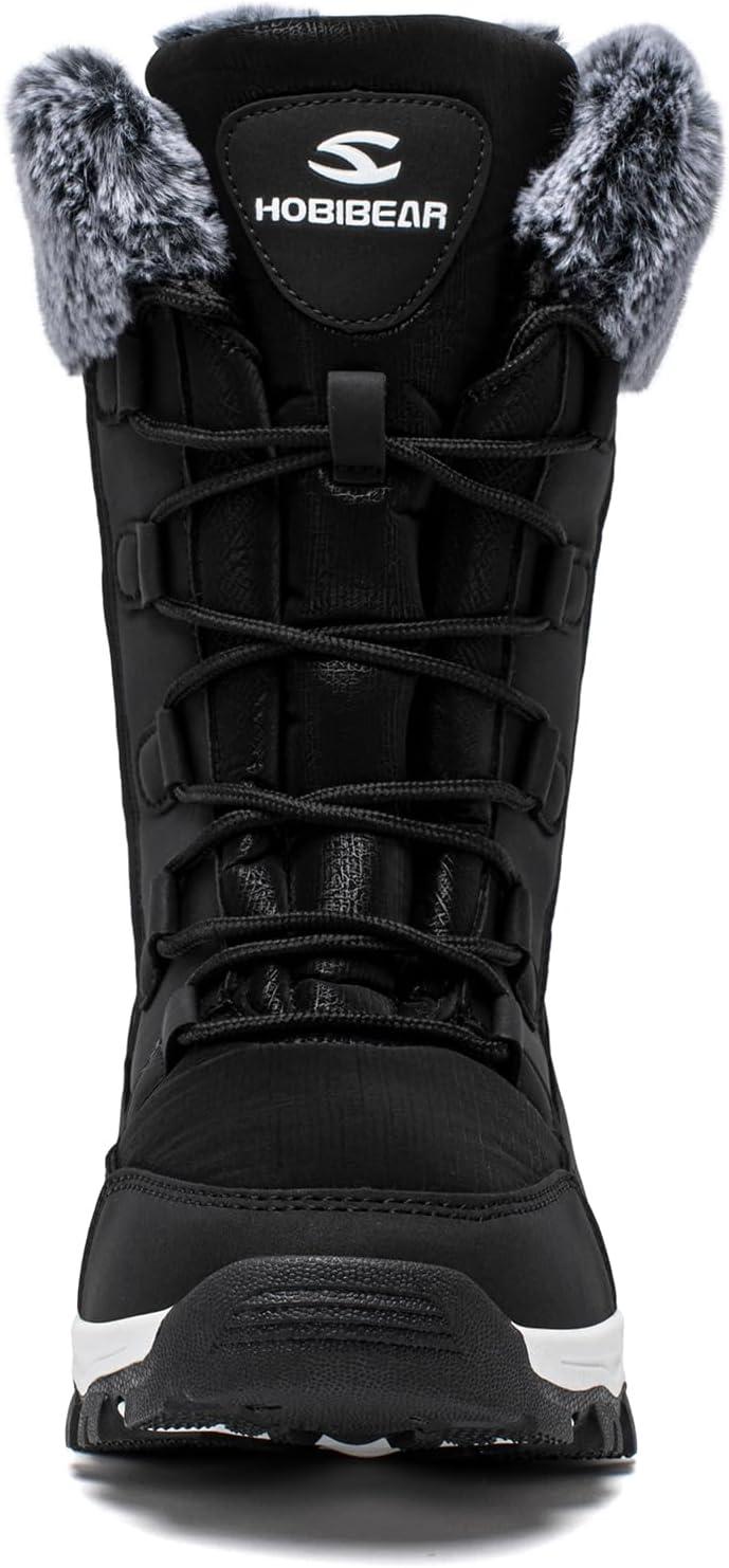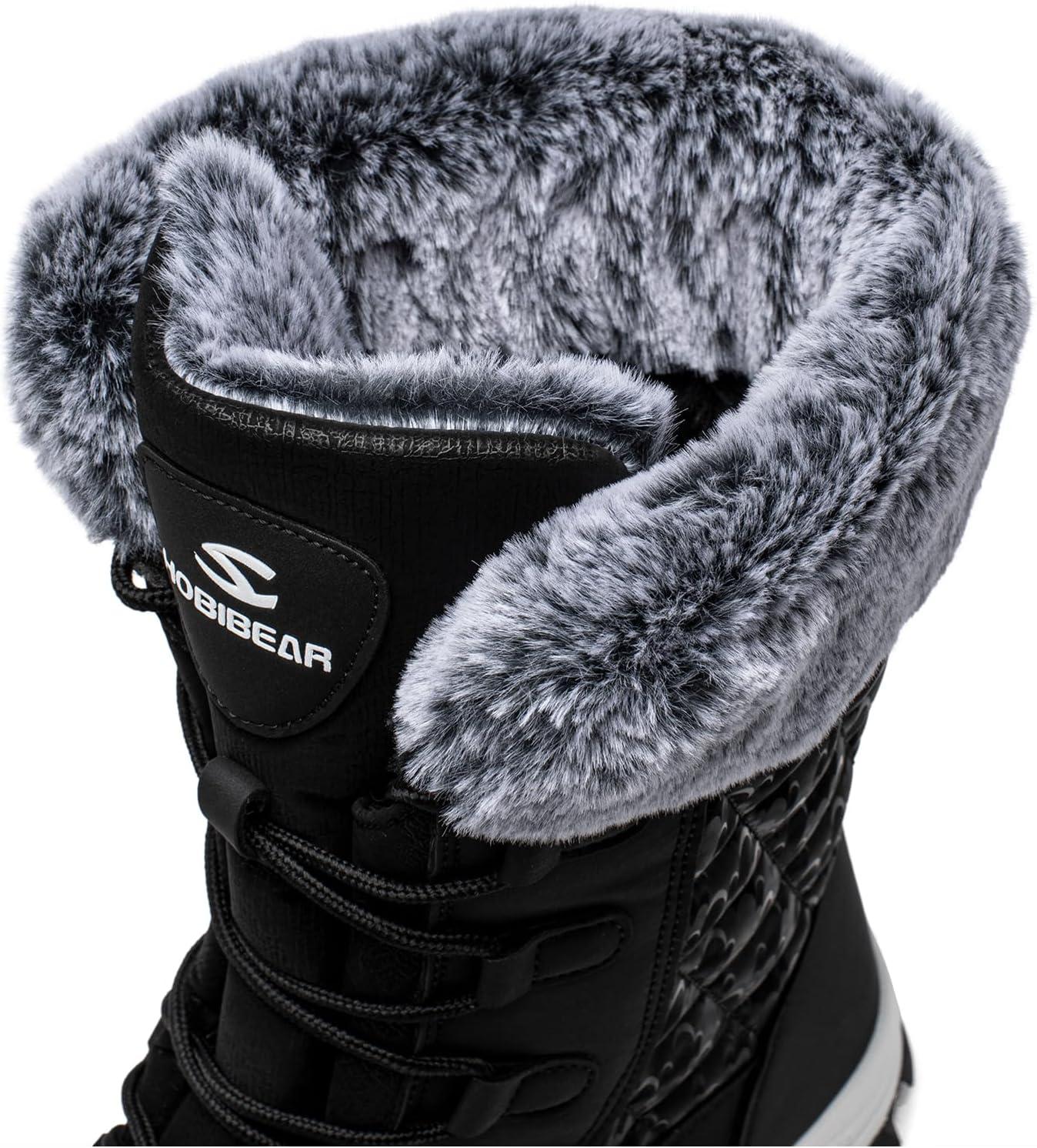 HOBIBEAR Women’s Winter Snow Boots Waterproof Lightweight Warm Faux Fur Lined Mid-Calf Booties(Black)
